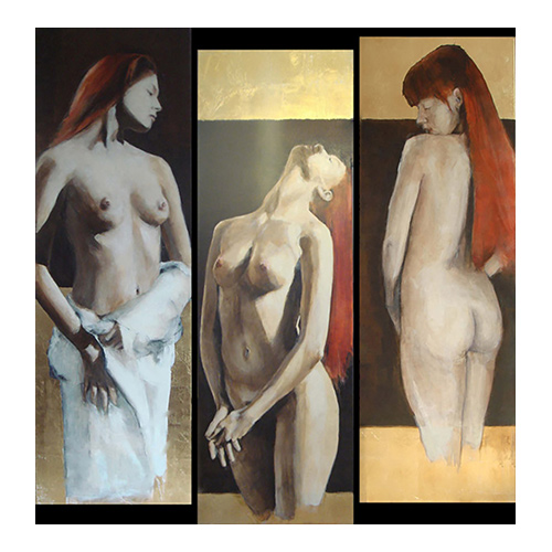 TRIPTYCH acrylic on canvas, gilded 3 x 200 x 64 cm